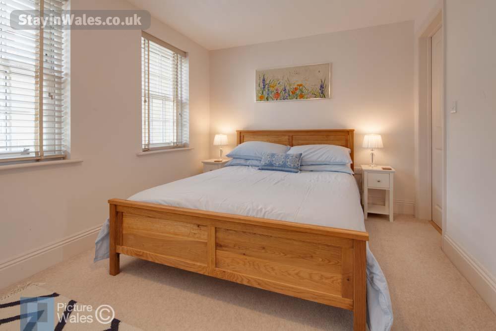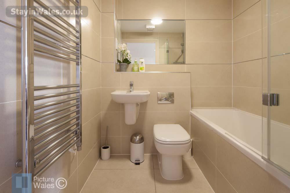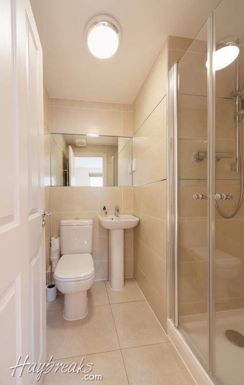 There are two bedrooms. The rear one is the smaller of the two, and has a double bed and a chair. The front bedroom has a kingsize bed, chest of drawers, and an en-suite shower room with loo and wash basin. Both bedrooms have clock radios and bedside lighting. The main bathroom, which has a bath with shower over, loo and wash basin, is adjacent to the rear bedroom.