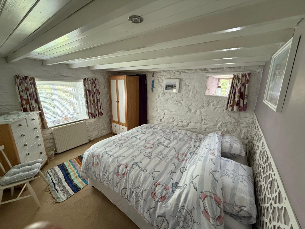 A staircase leads to the galleried 'crog loft' bedroom again with beams and a vaulted ceiling, two single beds and one pull out single bed. The twin beds can be zipped together to make one super king-size double if required.