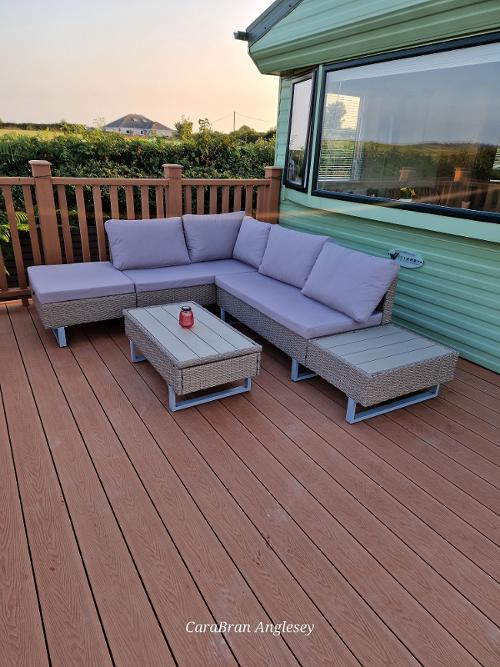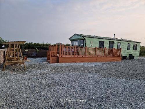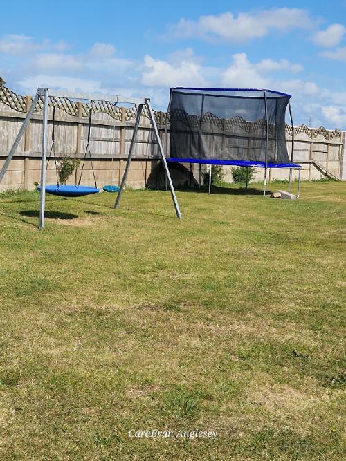 Carabran has three bedrooms - a double and two twins, wc with shower, television, fully functional kitchen, decking area with seating. There is a private enclosed field for guests' use. It has picnic bench, trampoline, swing and football goals for all ages to enjoy. The field is gated so pets can have a good runaround without escaping. Additionally there is a seperate seating area with fire pit and charcoal barbecue.